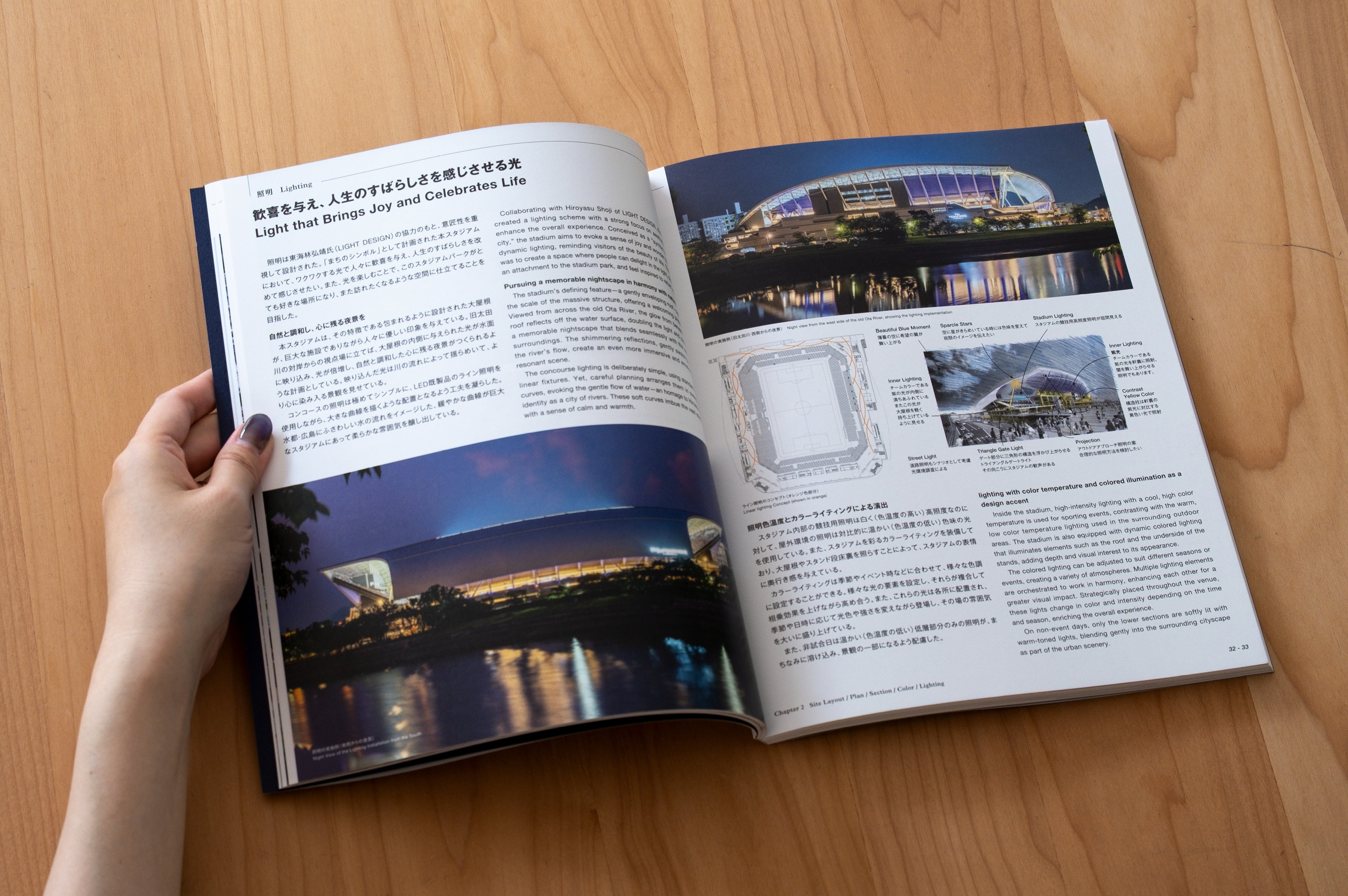 編著者=広島サッカースタジアム単行本制作委員会 執行真史(東畑建築事務所) / 仙田満(環境デザイン研究所) / 川野久雄・伊藤真樹・島村高平(大成建設)ほか 発行=建築画報社 印刷・製本=山田写真製版所